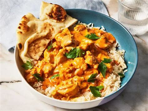 To garnish, sprinkle generously with fresh, chopped cilantro. The bright green against the rich sauce adds a pop of color and a burst of freshness that complements the dish perfectly. If you have any extra cream, you can drizzle a swirl on top for an extra touch of elegance, or even a few slivers of fresh ginger for a bit of visual flair. Now, let’s talk pairings. The absolute classic accompaniment is fluffy basmati rice . The long, delicate grains are perfect for soaking up every last bit of that decadent sauce. Make sure it’s cooked just right – separate, fluffy, and fragrant. Another must-have is warm naan bread . Whether you buy it or make it yourself, the soft, slightly chewy bread is ideal for scooping up the chicken and sauce. Garlic naan is particularly delicious!