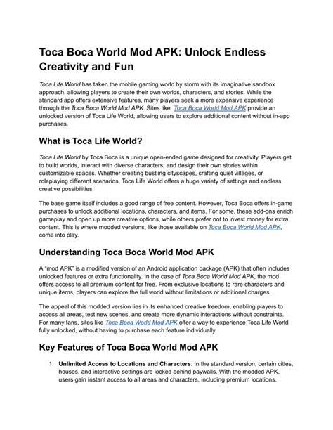 Hey guys! Ever wanted to dive headfirst into a world where your imagination is the only limit? Well, Toca Boca World Mod APK 1.37 is here to make that dream a reality! This is your ultimate guide to unlocking a treasure trove of fun and creativity in the Toca Boca universe. We’re talking about endless possibilities, from designing your dream home to crafting epic stories with a cast of adorable characters. So, buckle up, because we’re about to explore everything you need to know about this amazing modded version, and how it can supercharge your gameplay experience.