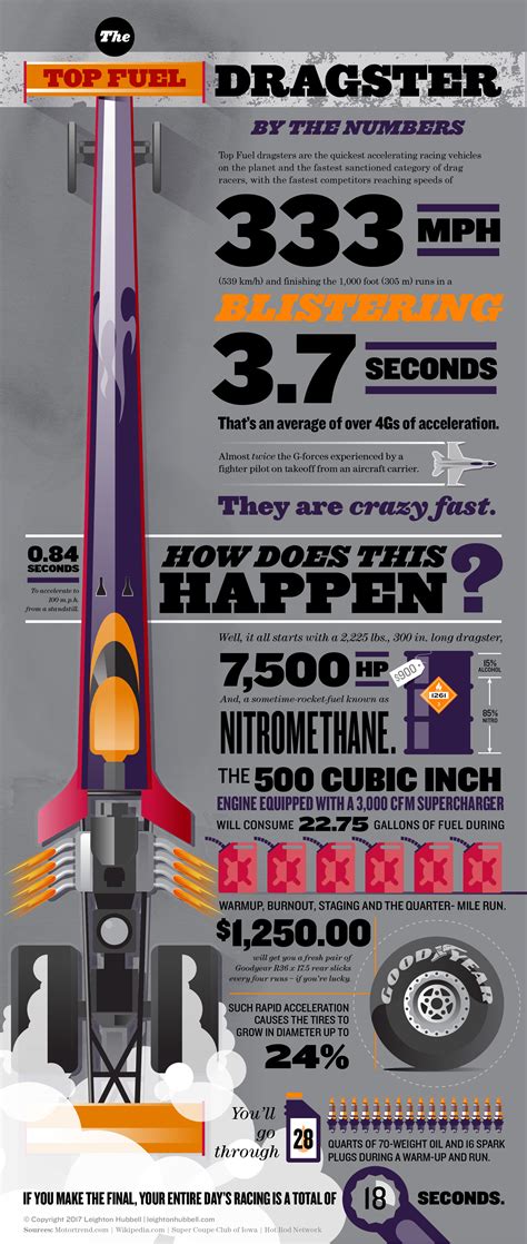 So, let’s get straight to it: how much fuel does a Top Fuel dragster actually burn? For a standard quarter-mile run, which lasts less than four seconds, a Top Fuel dragster will consume approximately 3.5 to 4 gallons of fuel . Now, that might not sound like a lot at first glance, but when you consider the timeframe – a mere handful of seconds – it becomes utterly staggering. To put this into perspective, imagine your average car. Your car might burn a gallon of gas for every 20-30 miles driven. A Top Fuel dragster, on the other hand, is using that much fuel to cover just a quarter of a mile! This equates to an astonishing fuel economy of roughly 0.4 miles per gallon . This isn’t a typo, guys; point-four miles per gallon. It’s an extreme example of fuel consumption driven by the pursuit of ultimate performance. The engine in a Top Fuel dragster is a supercharged, nitromethane-fueled beast designed to operate at incredibly high pressures and temperatures. The goal is to generate as much horsepower as humanly possible for that short burst of acceleration. To achieve this, the engine needs an equally extreme amount of fuel. The fuel system isn’t just a passive delivery mechanism; it’s a critical component actively managing the immense power output. The sheer volume of fuel being injected is enormous, and the pressures involved are unlike anything you’d find in a street car. It’s all about delivering a potent mixture that ignites with explosive force, pushing the dragster down the track at speeds exceeding 330 miles per hour. This phenomenal rate of fuel consumption is a direct consequence of the engine’s design and its operating parameters, pushing the boundaries of internal combustion technology. The sound, the speed, and the sheer spectacle of a Top Fuel dragster are all directly linked to this insatiable appetite for fuel. It’s a testament to the engineering prowess that allows these machines to harness such immense power for such a brief, yet unforgettable, period.