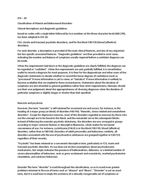 Understanding ICD-10 Codes For Non-Organic Psychosis