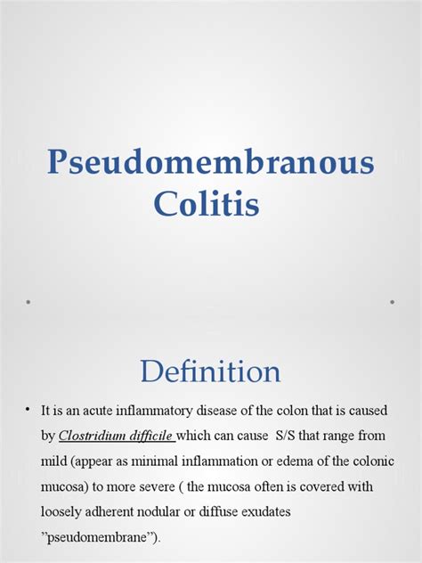 Hey everyone! Today, we’re diving deep into a topic that might sound a bit intimidating, but is super important to understand: Pseudomembranous Colitis . Guys, this condition, often referred to as C. diff colitis because it’s frequently caused by the bacteria Clostridioides difficile (or C. diff for short), is a serious inflammation of your colon. It can lead to some pretty nasty symptoms, and it’s crucial to know what it is, why it happens, and what can be done about it. So, let’s break it all down, shall we?