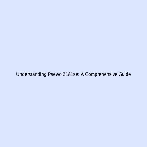 Understanding Psewo 2181se: A Comprehensive Guide
