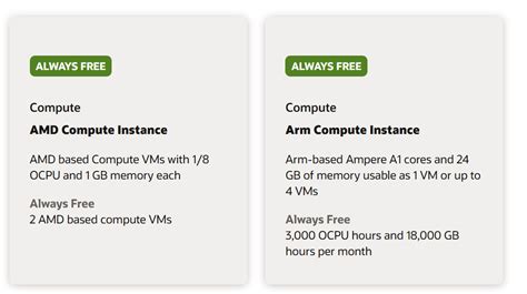First, the Always Free tier. This is the star of the show, the part that’s truly free forever , as long as you stay within the specified limits. These are fantastic for learning, experimenting, and even running small, steady workloads. Oracle provides you with two OCPU compute instances and 148 GB of Universal Credits per month. Wait, OCPU? Universal Credits? Let me break that down. An OCPU (Oracle Compute Unit) is basically Oracle’s way of measuring compute capacity, similar to vCPUs you might know from other clouds. You get two OCPUs, which means you can spin up two small virtual machines (VMs) that run on these OCPUs. These VMs come with a decent amount of RAM too, typically 1GB per OCPU. Think of these as your personal, always-on mini-servers in the cloud. You can install whatever you want on them, learn Linux, host a small static website, run a development environment – the possibilities are huge!