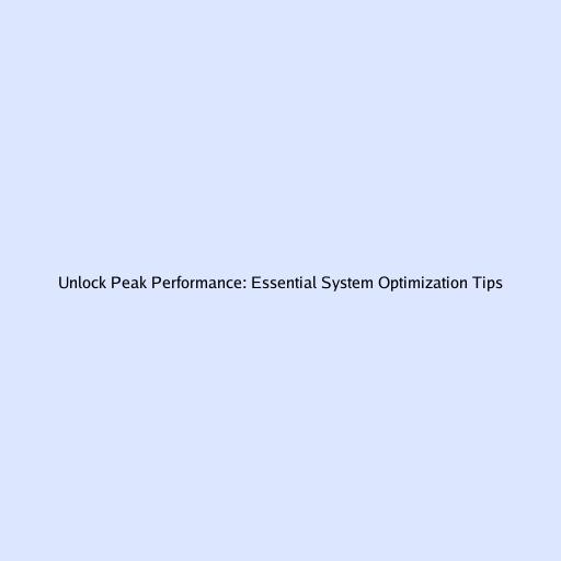 Unlock Peak Performance: Essential System Optimization Tips