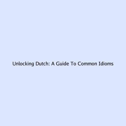 Unlocking Dutch: A Guide to Common Idioms