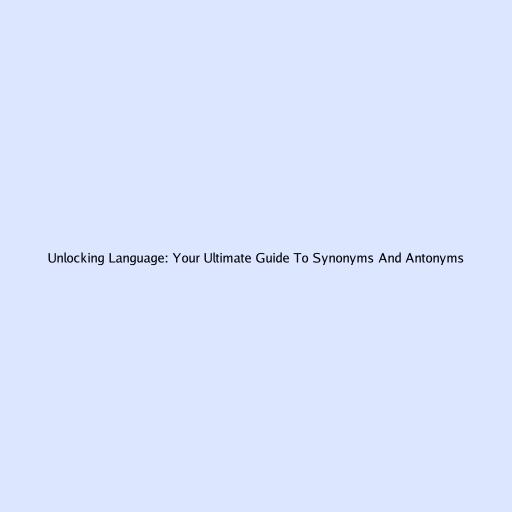 Unlocking Language: Your Ultimate Guide to Synonyms and Antonyms