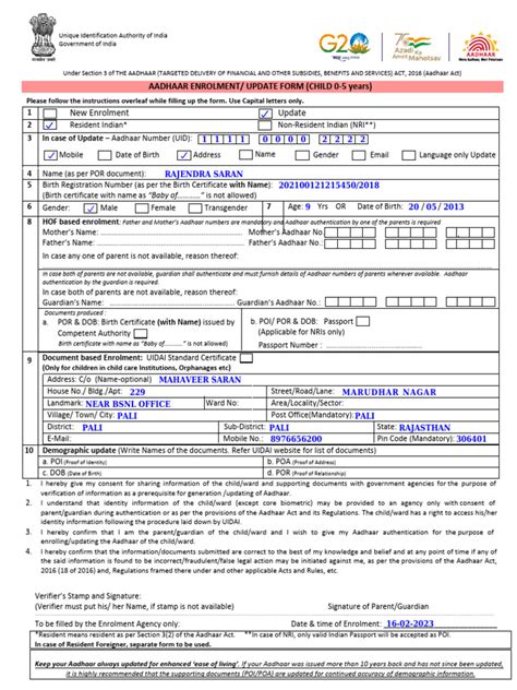 3. Gather Required Documents: Before heading to the Enrolment Center, make sure you have all the necessary documents. You’ll need your child’s original Aadhaar card, as well as proof of address and proof of relationship documents. Accepted documents for proof of relationship include birth certificates, passports, or any government-issued document that proves the relationship between the child and the parent or guardian. Having all the documents ready will ensure a hassle-free experience at the center. Double-check the UIDAI website for the complete list of accepted documents to avoid any last-minute surprises.