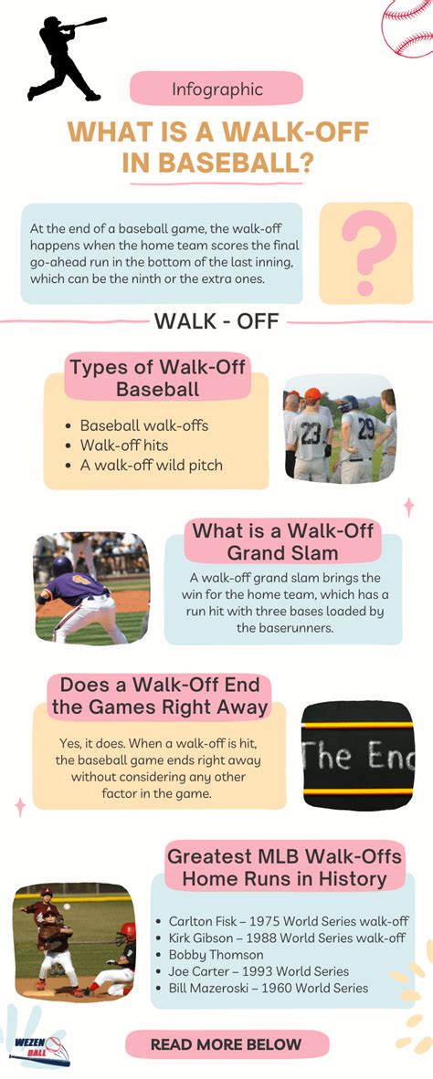 Hey baseball fans! Let’s dive into one of the most exciting plays in baseball: the walk-off . A walk-off is when the home team scores the winning run in the bottom of the final inning, ending the game immediately. It’s a moment of pure exhilaration for the winning team and a heartbreaker for the losing side. Understanding the rules surrounding walk-offs can enhance your appreciation for this dramatic play. Basically, a walk-off can occur via a home run, a hit, a walk, a hit-by-pitch, or even an error, as long as it gives the home team the lead in the bottom of the last inning or the bottom of an extra inning. Picture this: it’s the bottom of the ninth, the score is tied, and the home team has runners on base. The batter smashes a double into the gap, scoring the winning run from second base. Game over! That’s a walk-off. Or, imagine a bases-loaded situation with one out. The batter gets hit by a pitch, forcing in the winning run. Another walk-off! The beauty of a walk-off is its suddenness and finality. There’s no need to play the rest of the inning; once the winning run scores, the game is done. This adds a unique layer of excitement and strategy to the late innings of a baseball game. The tension builds with every pitch, knowing that any swing, any misplay, could end the game in dramatic fashion. Fans go wild, players celebrate, and the walk-off becomes an instant memory. So, next time you’re watching a game and the home team is trailing or tied in the late innings, remember the walk-off. It’s a game-changing play that can turn defeat into victory in the blink of an eye. And that’s why we love baseball!