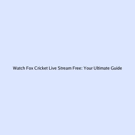 Watch Fox Cricket Live Stream Free: Your Ultimate Guide