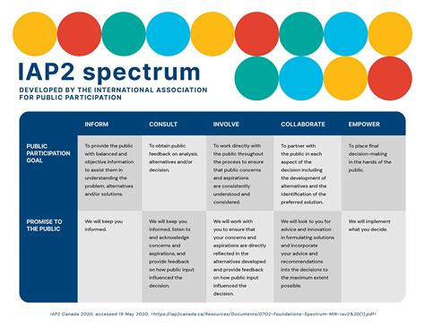 Now, let’s talk about the IAP2 Spectrum of Public Participation . This is like the toolkit that helps you figure out how much you should involve the public in a given situation. It’s not a one-size-fits-all deal, guys. Depending on the project, the audience, and the desired outcome, you’ll need to choose the right level of engagement. IAP2 has helpfully broken this down into five levels, starting with the most basic and moving towards the most intensive forms of involvement. Understanding this spectrum is crucial for planning effective participation strategies.