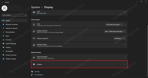 Once you’re in the Display settings, you’ll need to scroll down a bit. Look for an option that says ‘Graphics’ . Click on it. This will open up a new section specifically for graphics-related settings, where you’ll find the option we’re looking for.
