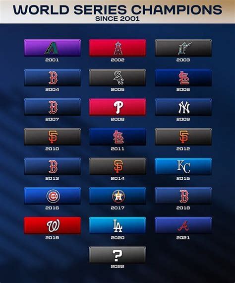 Alright, buckle up, because the early 2000s were a wild ride. We saw the rise of dynasties and the emergence of unexpected heroes. The first few years of the new millennium set the tone for what would be an exciting couple of decades for World Series Champions .