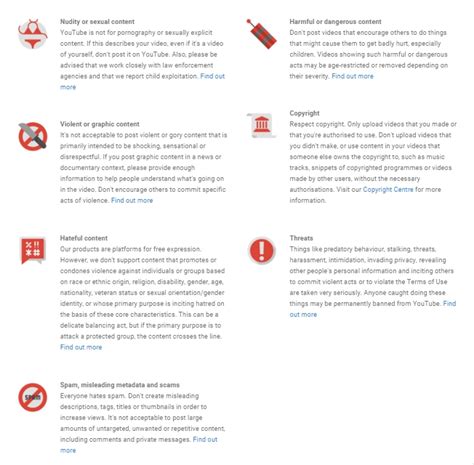 Each of these categories has a lot of specific rules attached to it, so it’s essential to familiarize yourself with the full list. YouTube provides detailed explanations and examples of what is and isn’t allowed. It’s really worth reading the actual guidelines on the YouTube website to get a comprehensive understanding. Remember, these guidelines are constantly evolving as the platform adapts to new challenges and threats. Make sure you regularly check for updates to stay informed. A good strategy is to create content with these guidelines in mind from the beginning. Think about it as a filter. If you’re unsure if something might violate a guideline, it’s always best to err on the side of caution. Reviewing your content before publishing it, especially if it contains sensitive topics, is a great practice. Also, being aware of the guidelines is the first step toward building a successful and compliant YouTube channel, allowing you to focus on creating amazing content that your audience will love. Keep in mind that ignorance of the law isn’t a defense, so make sure you understand the rules to protect your channel from violations.