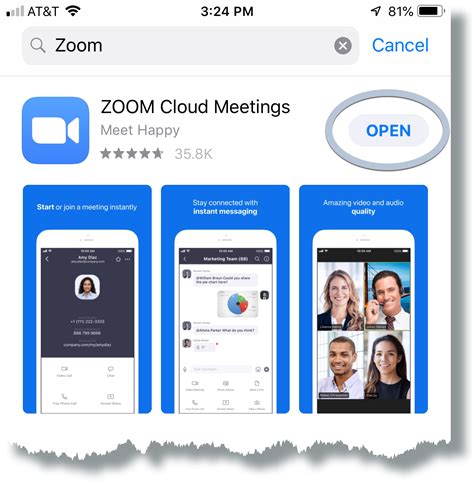 • Open Zoom: Tap the “Open” button to launch the Zoom app directly from the App Store. Alternatively, you can find the Zoom icon on your home screen (it’s a blue icon with a white video camera) and tap it to open the app.